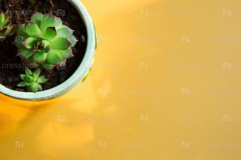 Эхеверия в горшке при ярком свете с тенями. Комнатное растение, зеленый дом, суккулент – символ гармонии. Скопируйте пространство. Уход за комнатными растениями