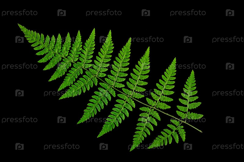 Зеленый лист папоротника на черном фоне, изолировать. Натуральный сухой лист растения, орнамент