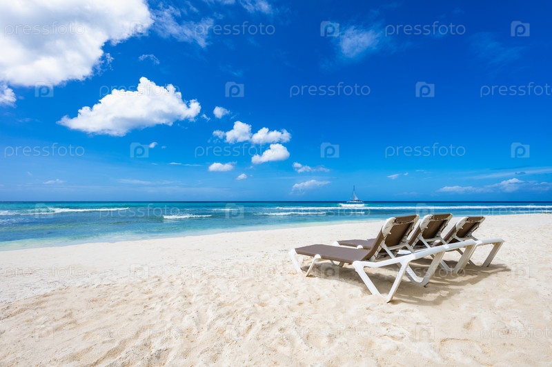 Пальмовый пляж шезлонг карибское море