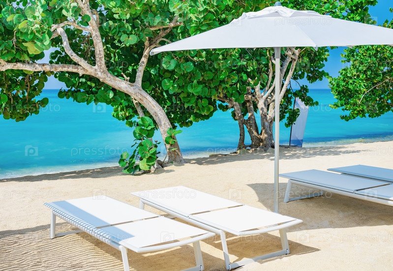 Шезлонг в пальмовом пляже