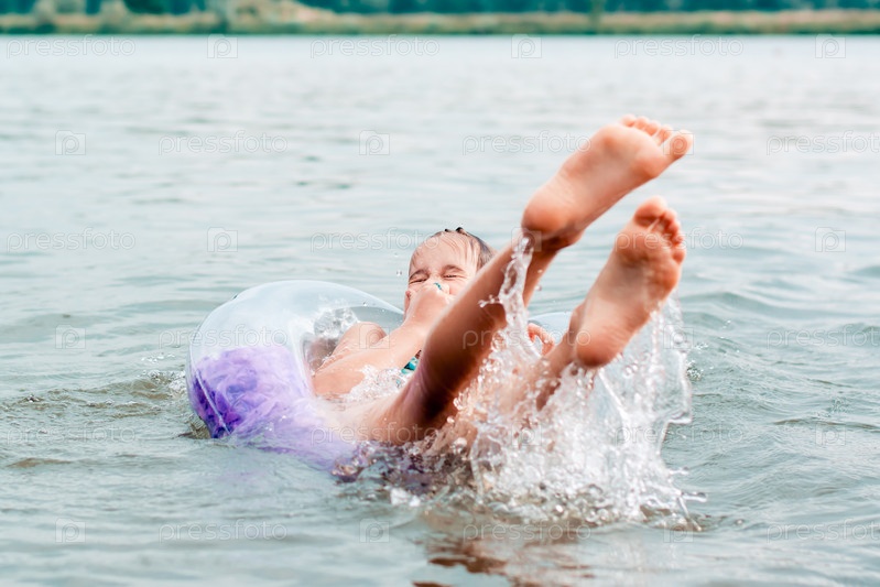 Девушка зажимает нос и падает с надувного кольца в реку. Местный туризм