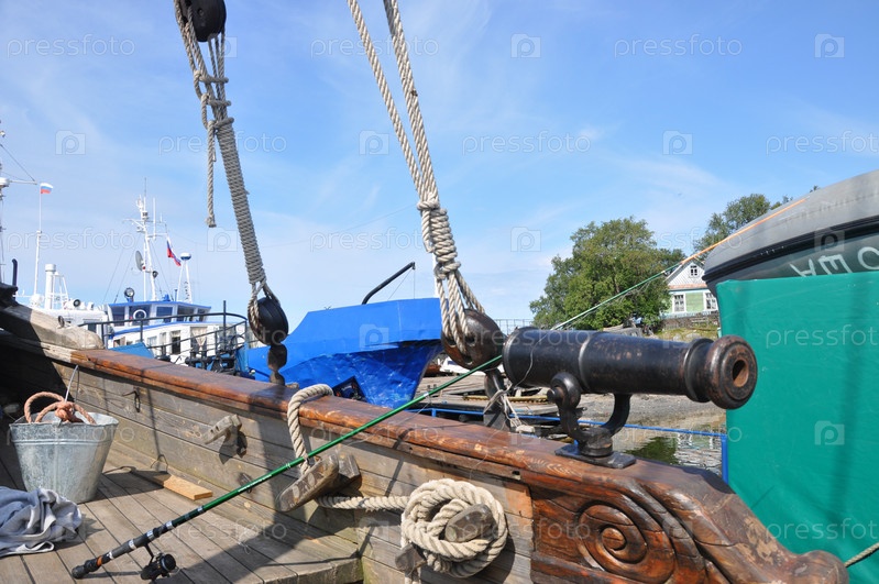Корабли в порту. Деревянная палуба корабля