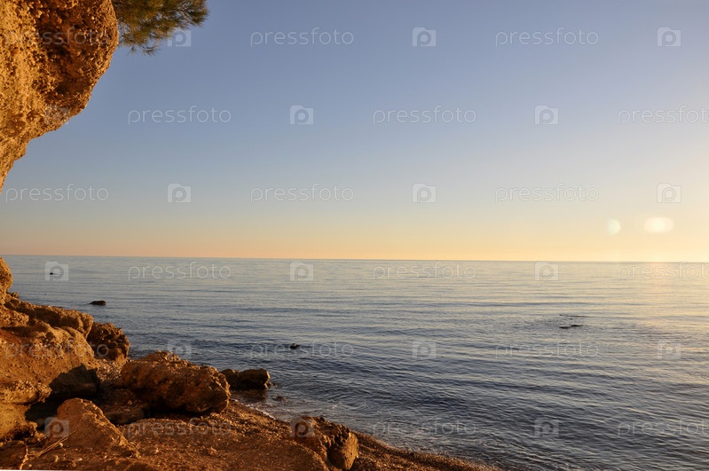 Закат в море. Морской берег вечером. Черное море. Абхазия