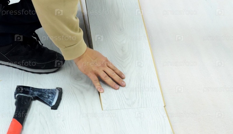 Ремонт квартиры, мужчина укладывает ламинат в комнате