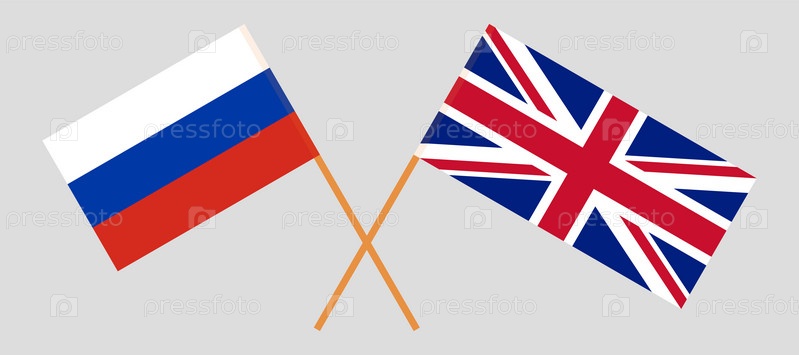 Скрещенные флаги России и Великобритании. Официальные цвета, корректные пропорции