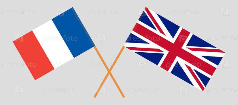 Скрещенные флаги Франции и Великобритании. Официальные цвета, корректные пропорции