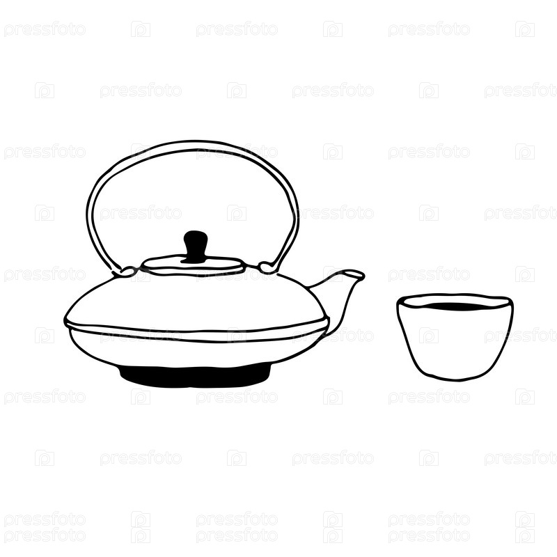 Китайский чугунный чайник и маленькая чашка чая, иллюстрация