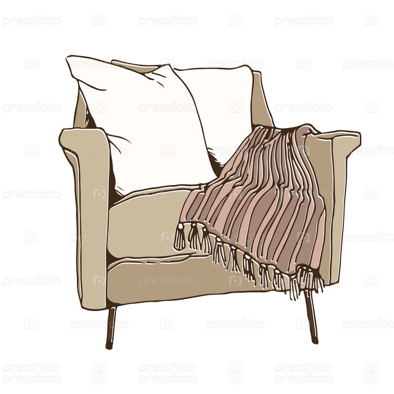 Кресло с полосатым пледом, иллюстрация на белом фоне