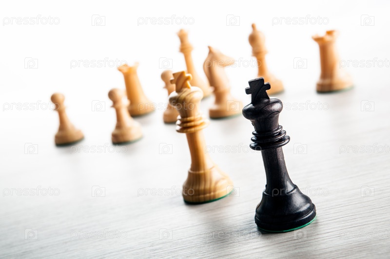 Шахматные фигуры на сером фоне и черно-белые шахматные короли