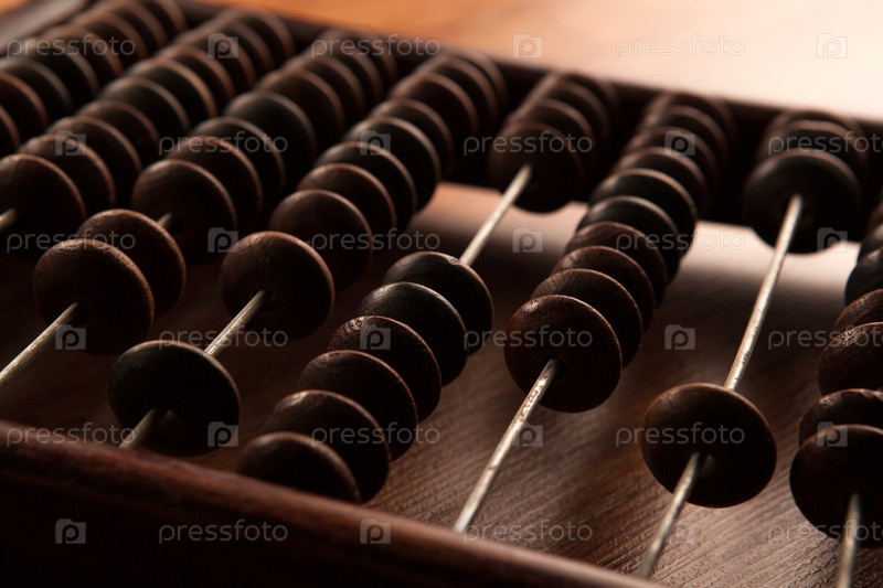 Антикварные счеты на деревянном столе крупным планом