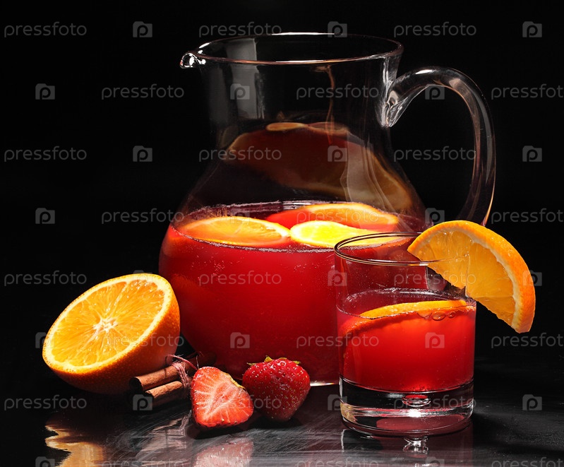 Сангрия в стеклянном кувшине на деревянном столе