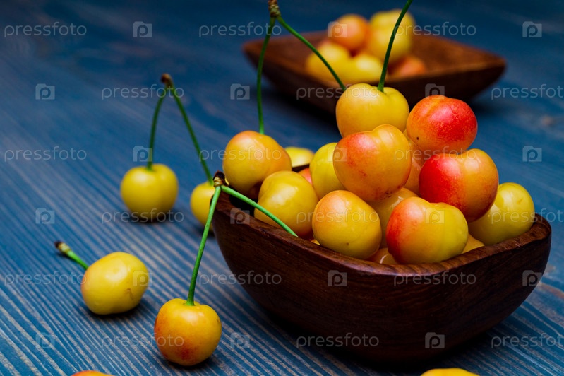 Желтая черешня на столе