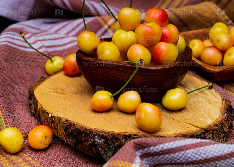 Желтая черешня на столе