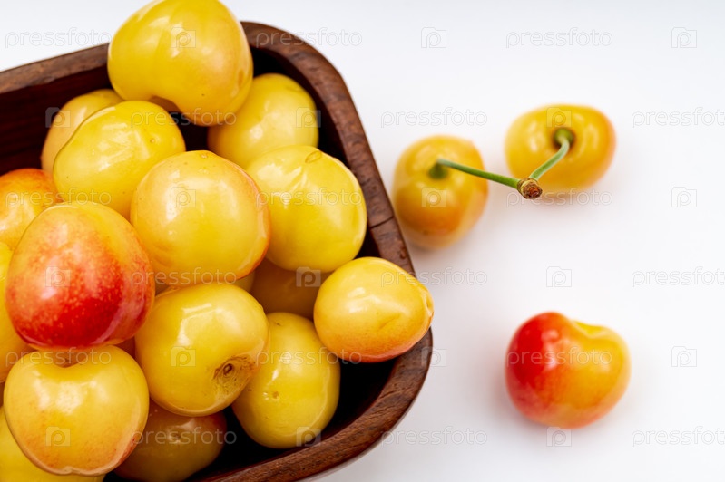 Желтая черешня на столе
