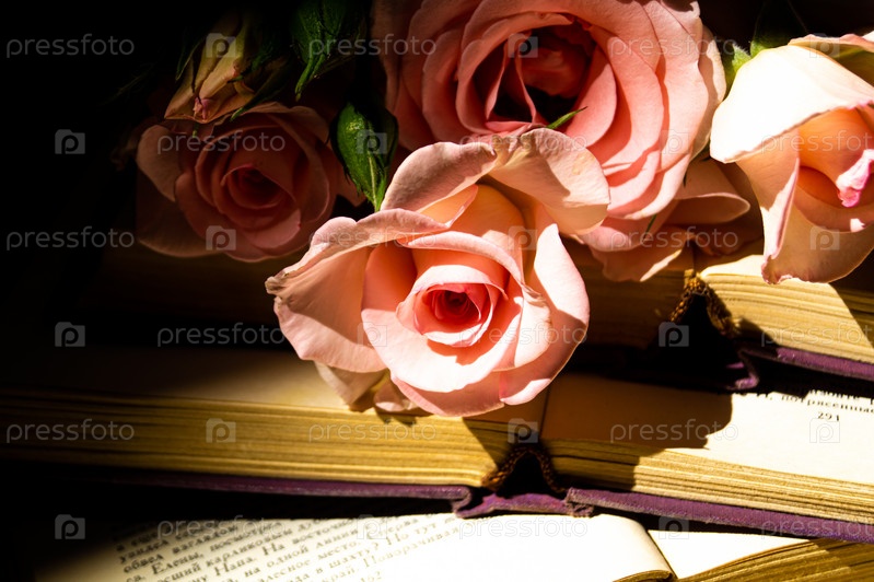 Открытая книга с букетом роз