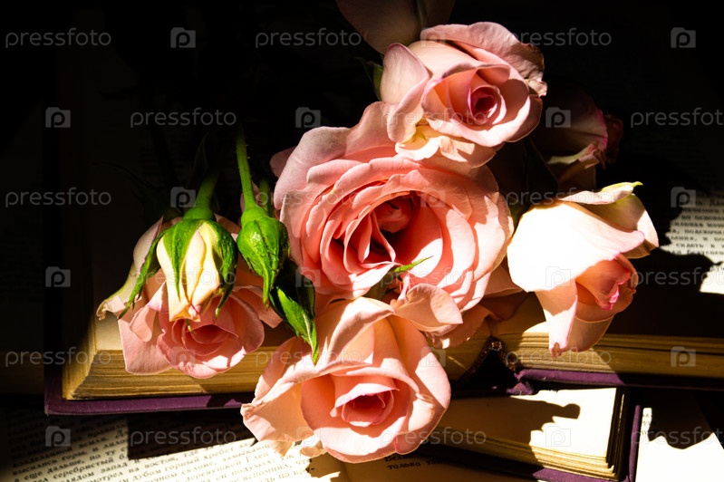 Открытая книга с букетом роз