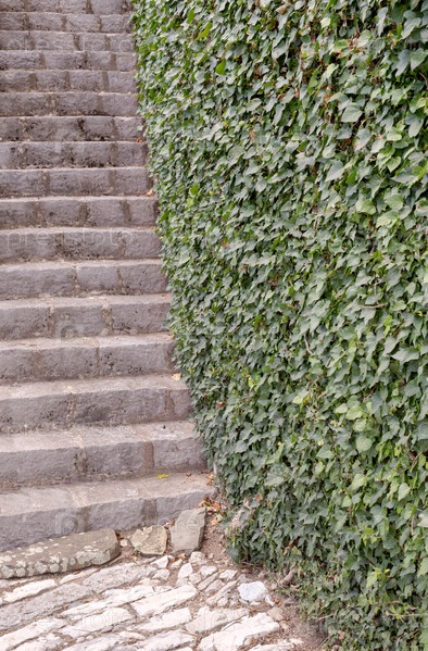 Каменная лестница и плющ на стене