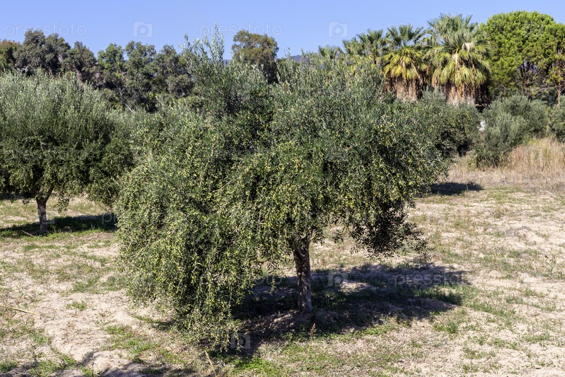 Плоды оливок созревают на ветке крупным планом в солнечный день