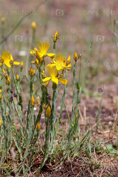 Растение (Hypericum olympicum) в крупном плане