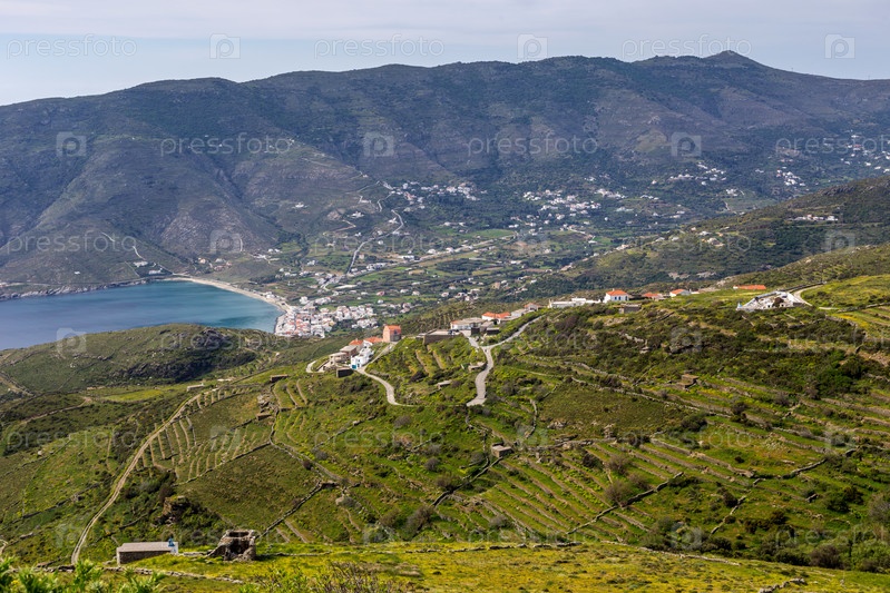 Вид на деревню Кохилос из замка Фанеромени на Андросе (Греция, Киклады)