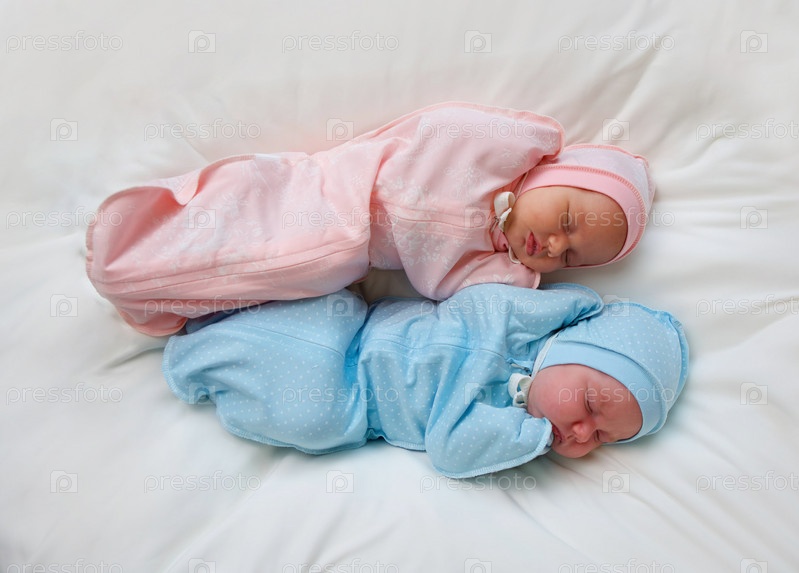 Два новорожденных близнеца мальчик и девочка