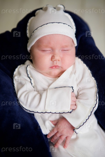 Маленький новорожденный мальчик лежит в белой одежде