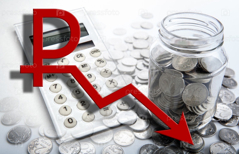 Бизнес финансы натюрморт и падающий российский рубль
