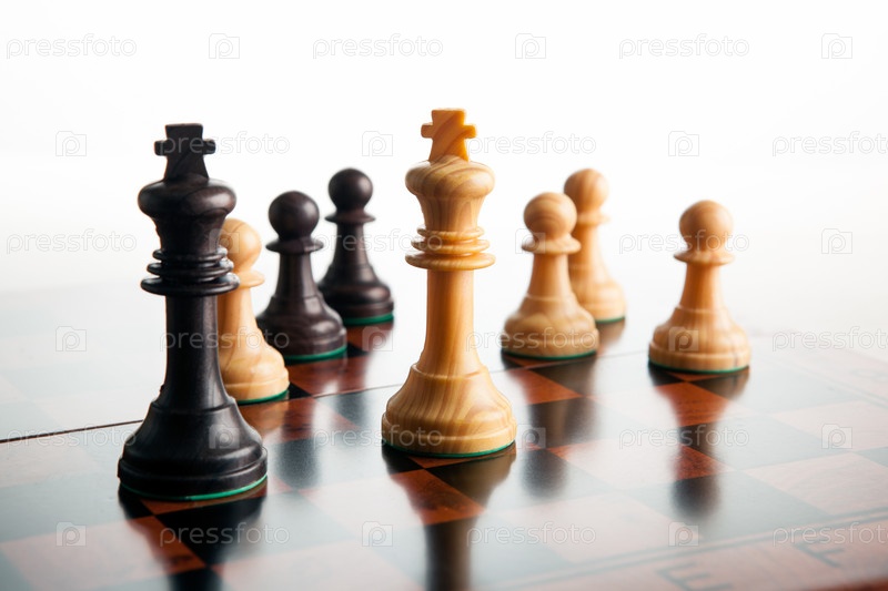 Шахматная дуэль двух королей и пешек на белом фоне