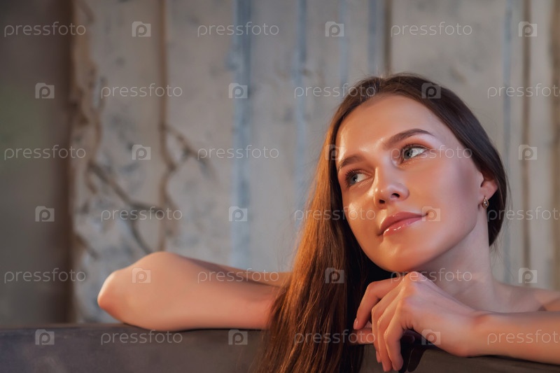 Молодая милая жизнерадостная женщина в ванной в винтажной ванной комнате смотрит в сторону. принимает процедуры, расслабляется и улыбается. Рекламная концепция здорового образа жизни и самообслуживания. Копируйте место для сайта или SPA