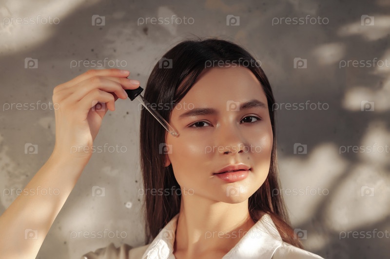 Руки женщины держат бутылку с массажным или косметическим маслом для нанесения капель на кожу лица
