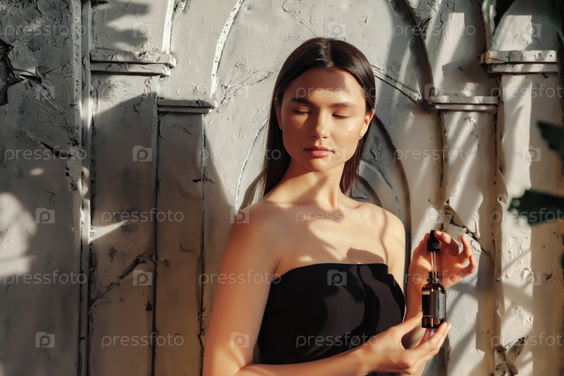 Руки женщины держат бутылку с массажным или косметическим маслом для нанесения капель на кожу лица