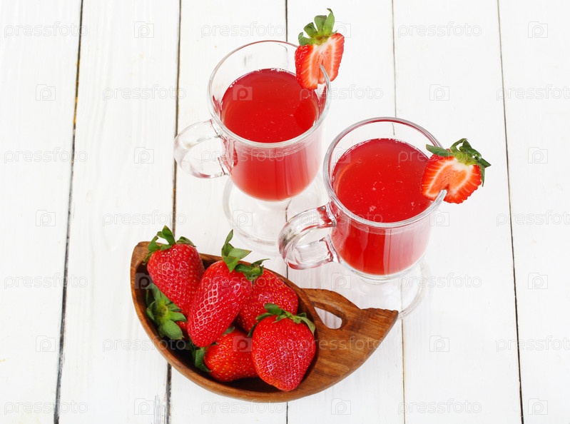 Клубничный сок на белом фоне