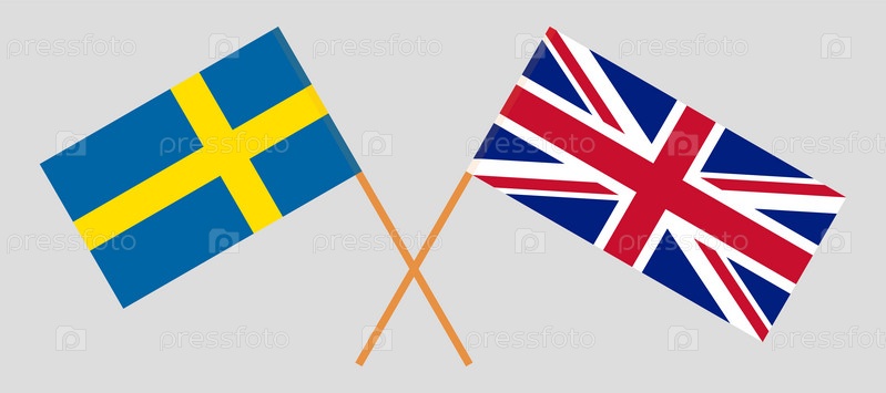 Скрещенные флаги Швеции и Великобритании. Официальные цвета, корректные пропорции
