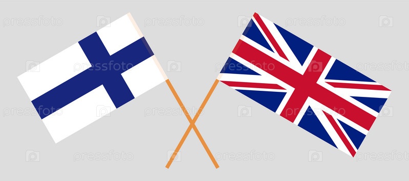 Скрещенные флаги Финляндии и Великобритании. Официальные цвета, корректные пропорции