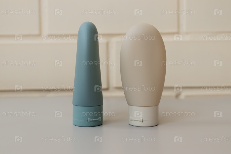 Набор многоразовых косметических флаконов для путешествий. Безотходный косметический продукт. Мокапы косметического брендинга