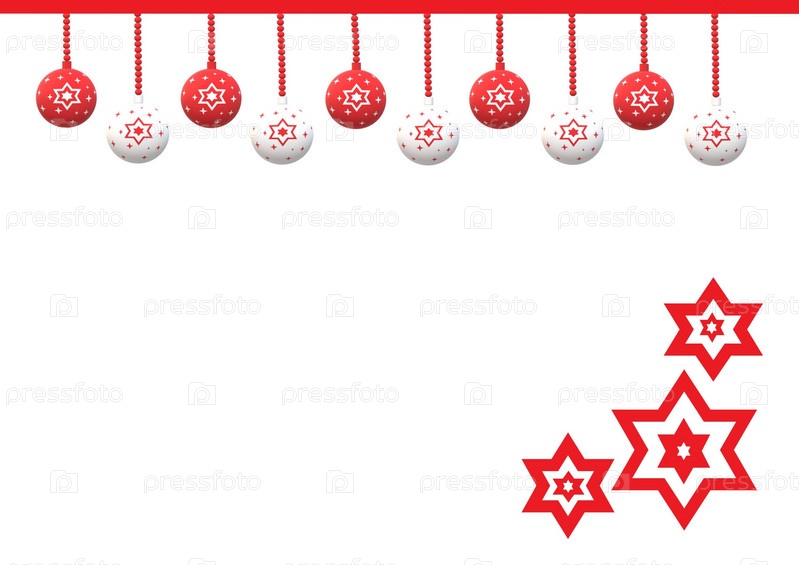 Подготовка к новогодней открытке в красно-белых тонах с новогодними украшениями Blank for a Christmas card in red and white colors with Christmas decorations