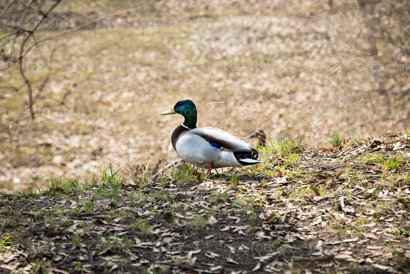 Утка на траве в парке