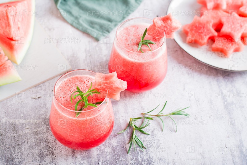 Холодный арбузный напиток в стаканах на столе. Летние освежающие коктейли