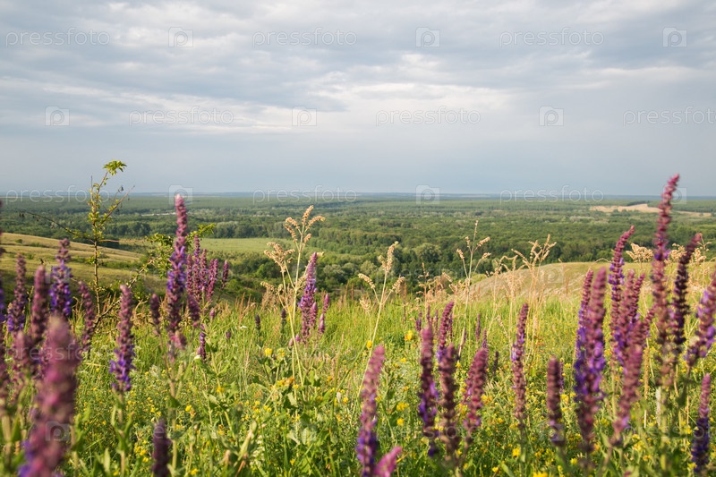 Полевые цветы на горе. Среднерусское возвышенность. Воронежская область. Дикие цветки на горе Центральное российское высокогорье Воронежский регион