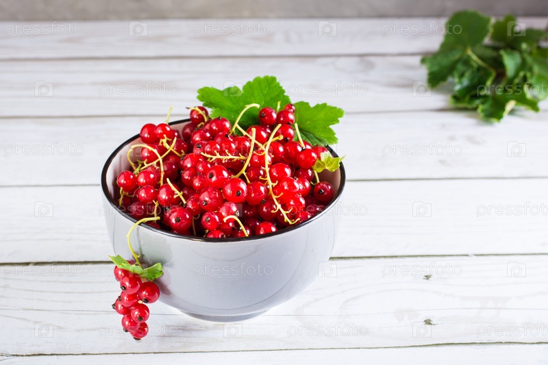 Свежие ягоды красной смородины в миске на столе. Летняя органическая еда