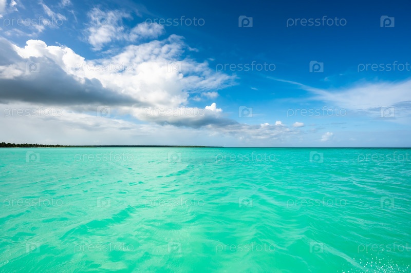 Открытое синее море кучевые облака
