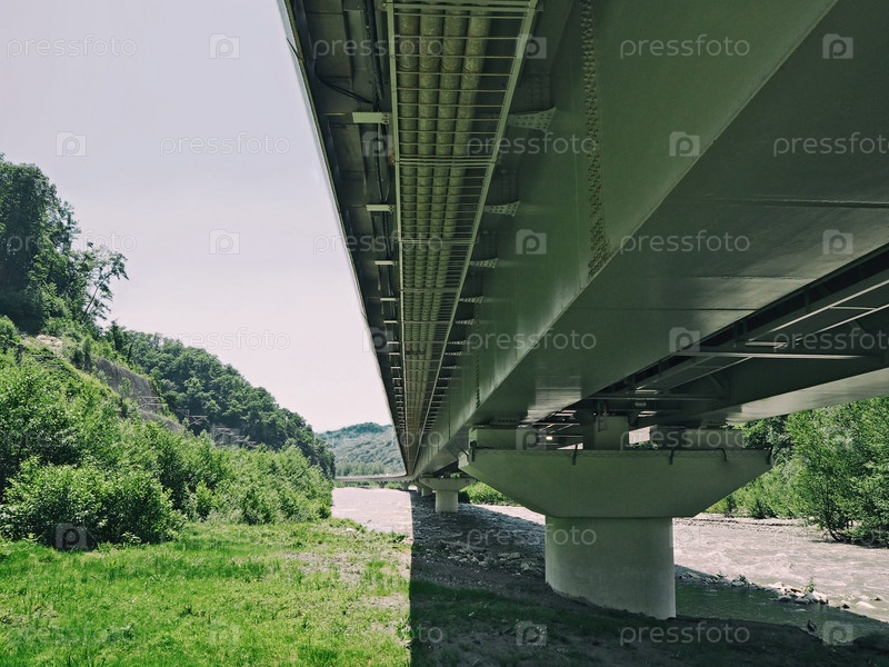Автомобильный или железнодорожный мост с опорными колоннами