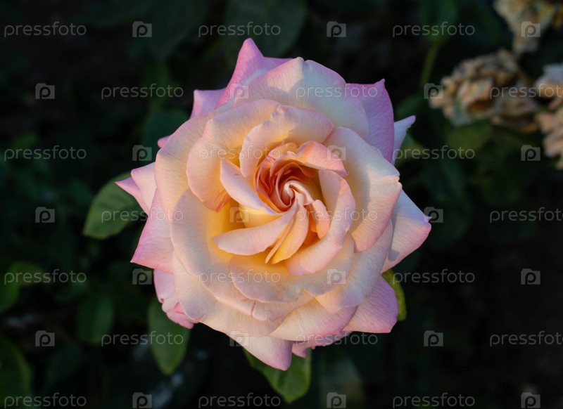 Красивая розовая роза цветет в саду. Крупный план красивых розовых роз на зеленом текстурированном фоне
