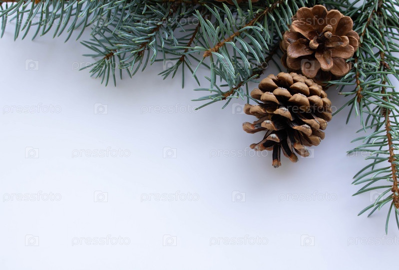 Рождественская композиция с сосновыми ветками и шишками, изолированными на белом