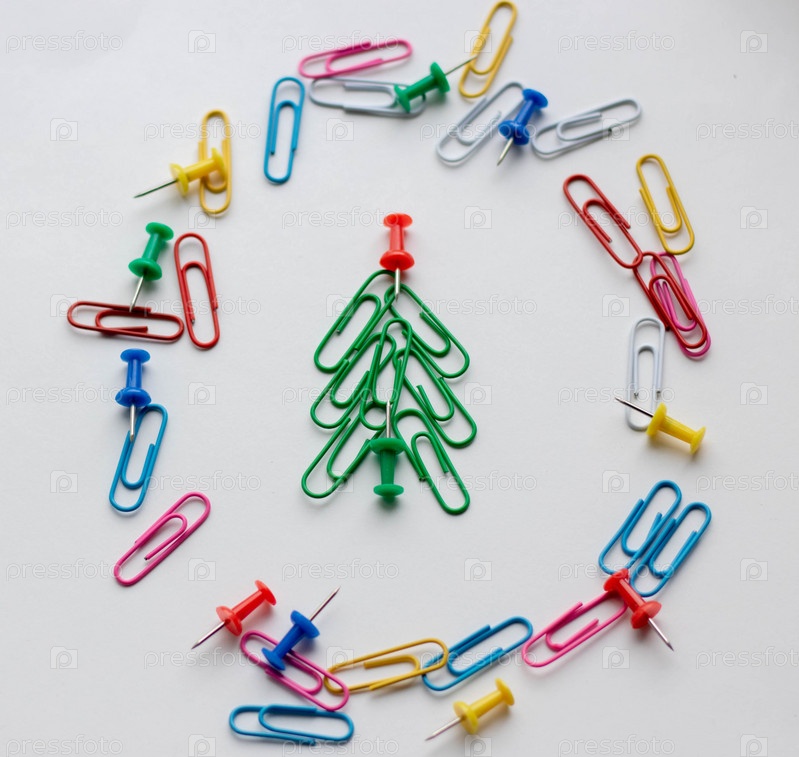 Скобы сложили в новогоднее дерево на белом фоне