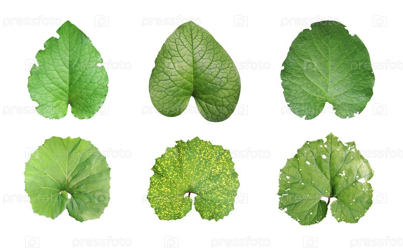 Набор зеленых листьев на белом фоне