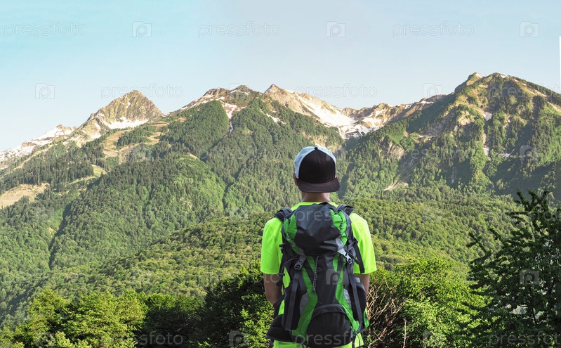 Человек, стоящий на фоне горного хребта
