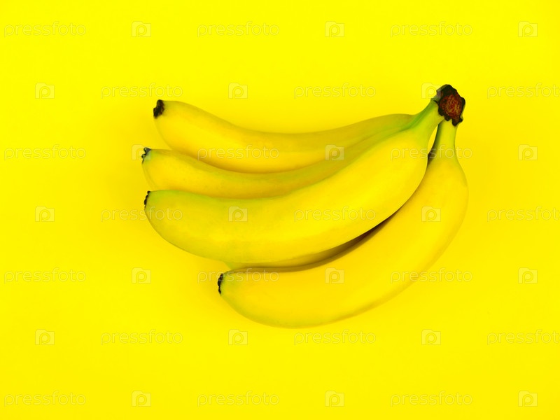 Связка бананов на желтом фоне
