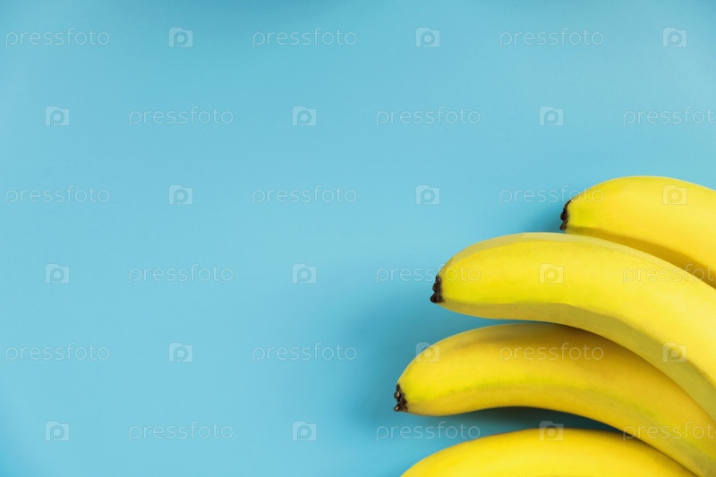 Связка бананов на синем фоне
