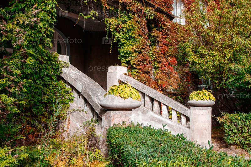Старая красивая каменная лестница. деталь крупным планом. солнечный летний день